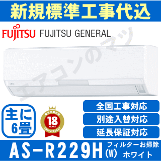 ★200円クーポン配布中★【超お買い得な工事費込セット(商品+新規標準工事)】【送料無料(エリア限定)】富士通ゼネラル■AS-R229H-W■(AS-R22J同等品+リモコンホルダー付) 2019年モデル【-nocria-RHシリーズ】[主に6畳用][200]