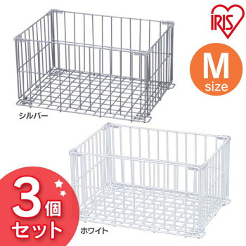 【3個セット】ワイヤーコンテナ WCO-M ホワイト・シルバー オーヤマ ワイヤーコンテナー コンテナ 収納 収納ケース 箱 かご おりたたみ 折り畳み 折りたたみ クローゼット キッチン リビング コンパクト 色 おしゃれ 使いやすい おすすめ 収納箱 白 銀