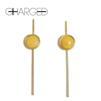 ≪Charged Jewelry≫ チャージド・ジュエリー大粒 天然石 シトリン ロングバー スタッズピアス Gemstone Long Earrings (Citrine)【レディース】