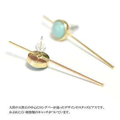 大粒の天然石の中心にロングバーが通ったデザインのスタッズピアスです。